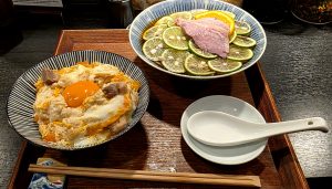 コロッと気分が変わり季節限定のすだち鴨蕎麦と親子丼を注文しました。